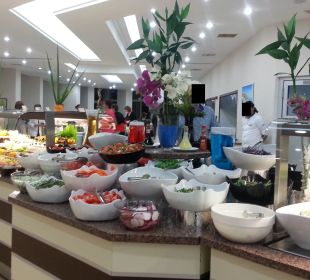 Ich bin mit meinem Sohn(12) 10 Tage in den Oktoberferien dort zu Gast gewesen und wir hatten ein einfaches Zimmer Landseite bestellt. Da wir über den Veranstalter nur noch Landblick buchen konnten, einige Tage vor Anreise habe ich das Hotel per Mail angeschrieben und habe für 40 € (Bar vor Ort) ein Zimmer Meerblick bekommen, zwar im alten Trackt aber besser als Landseite. Der neu erbaute Trackt des Hotels hat modernere und viel viel schönere Zimmer. Da wir zu einer ruhigen Reisezeit dort waren, war das Poolwasser eiskalt,wir nutzten daher das Meer das zwar auch kalt war aber nicht sooo doll wie der Pool. Im Restaurant bei all inclusive ging der Service ganz gut, aber immer unter dem Punkt das wir hier waren als die Saison fast zu ende ging. Bei voller Auslastung könnten die Mahlzeiten zu einem echten Kampf ausarten. Liegen waren am Pool und Strand immer frei, im Hochsommer könnte es aber auch hier sehr eng werden. Uns begegnete man freundlich, die Rezeption war hilfsbereit und die Putzdamen mit Trinkgeld auch bemüht. Wir waren mit dem Aufenthalt zufrieden und die Anbindung zu den Geschäften und in die Stadt war sehr gut. Das essen war Landestypisch, es sollte für jeden was dabei gewesen sein.