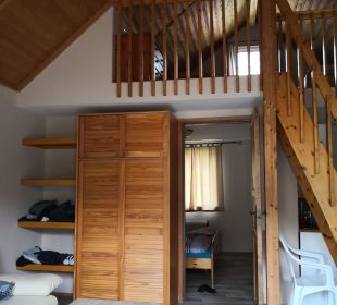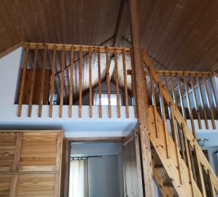 offener Schlafboden mit 2 Einzelbetten. Ein Sofa im Wohnbereich hätte