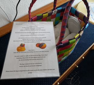 Für den Badebereich gab es sogar extra Handtücher und Bademäntel in einer süssen Tasche zurecht gemacht.