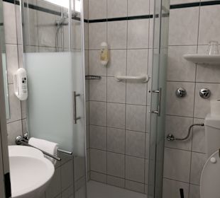 Wir hatten ein Duschbad in dem alles da war was man brauchte. Schön ist das jedes Zimmer einen eigenen Balkon hat und auch Auflagen für die Stühle da waren. Wir haben uns sehr wohl gefühlt.