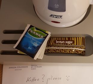 einen Wasserkocher dazu Teebeutel, aber keinen Kaffee. Diesen haben wir